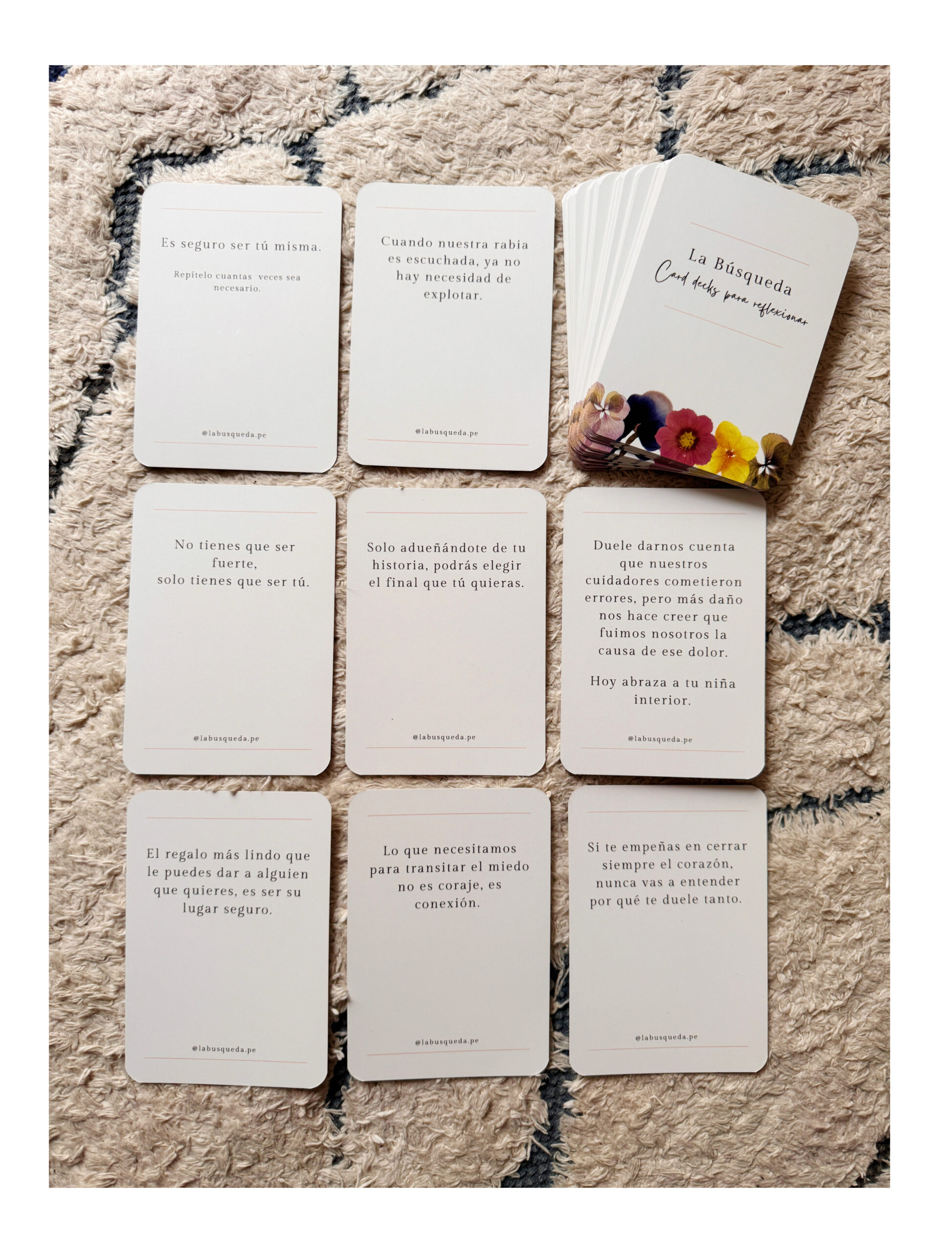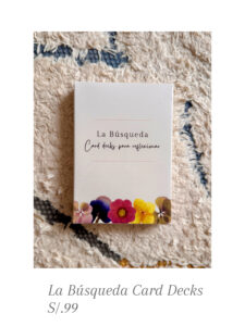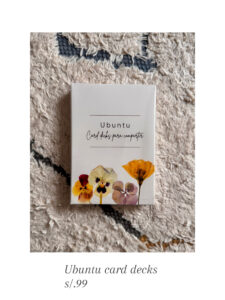 Un pack con las tres card decks: Ubuntu para compartir y conectar en grupo, Déjate Ver para hacer journaling y La Búsqueda para reflexionar e inspirarnos + un cuadernillo para escribir todo lo que va surgiendo.